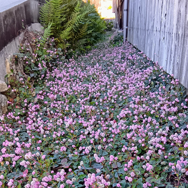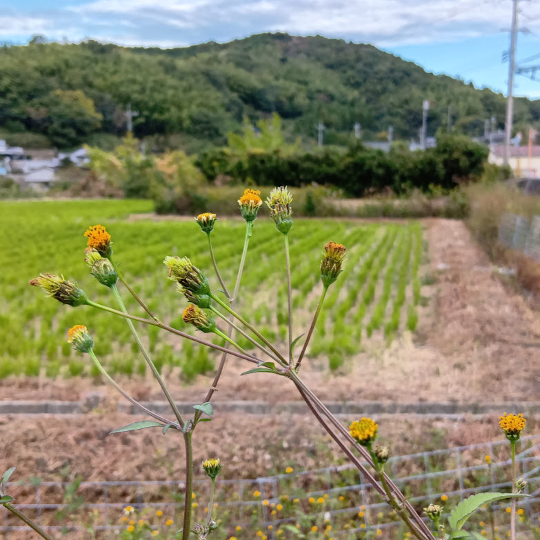 可愛い花が咲いた後なんにでも引っ付く種…むむむ。こいつ根が浅いので種ができる前にガンガン抜いていく。来年は居なくなって欲しい。